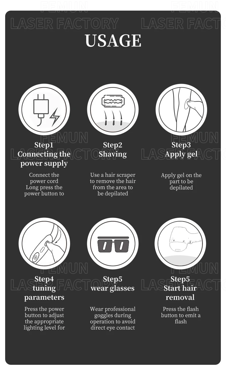 Force evenly in the hair removal repeatedly contact, let the light wave on the root of the hair thoroughly "encircles"