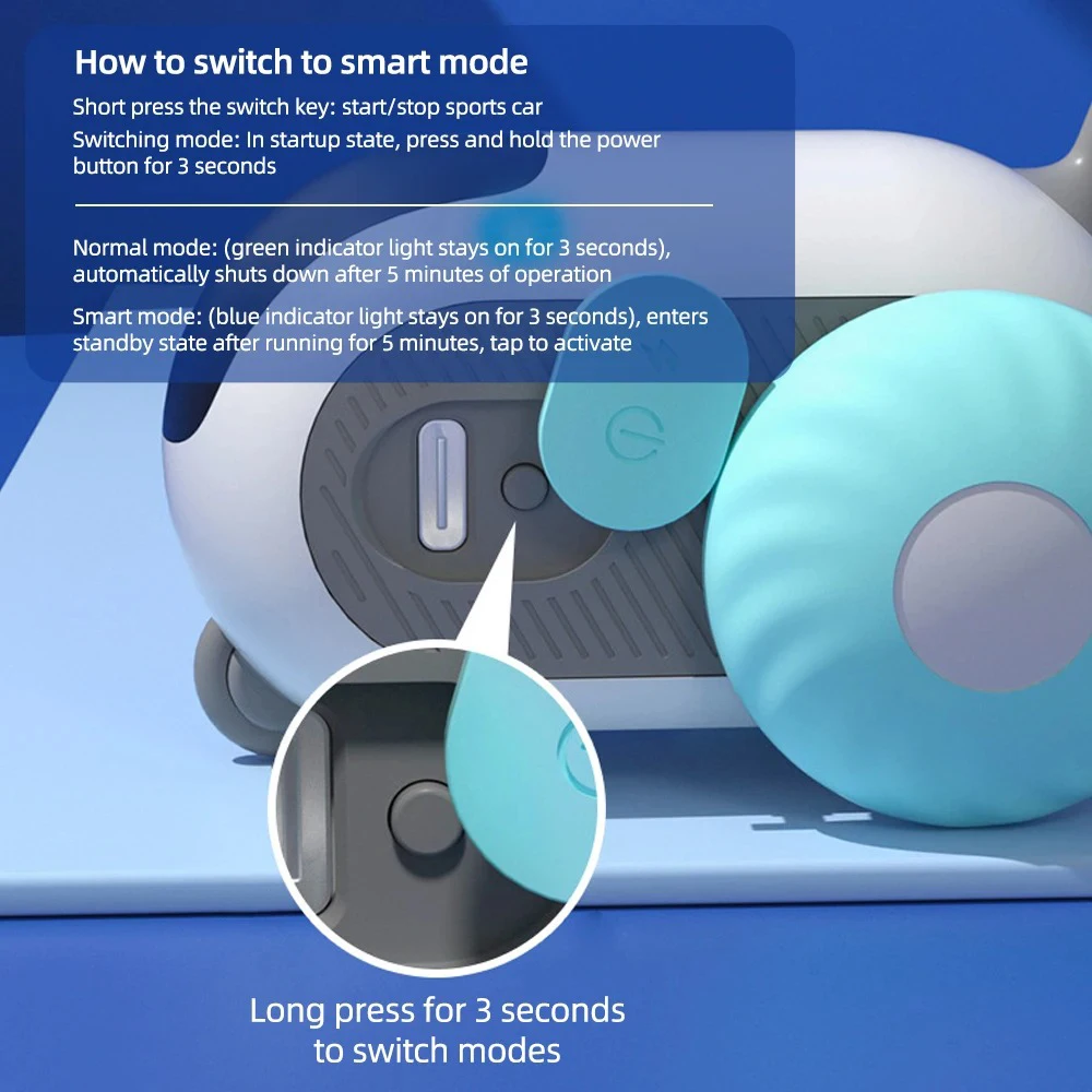 【Dual Mode】①Smart Mode: Flip the switch and the cat and automatic cat toy starts running free, triggering your cat's instinct to chase and pounce on moving prey. ②Remote control mode: Put the fun in your hands; the included four directions remote control allows you to move the interactive pet toys back and forth with just the press of a button, increasing the fun of interacting with your cat.
